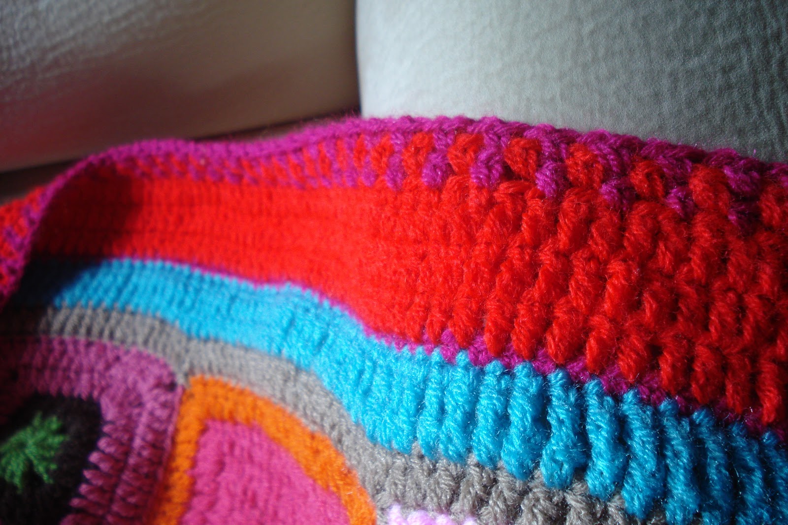 I'm making quite a wide border, I want the blanket to look well "framed" if you know what I mean. Still a couple of rounds and it will be done. Mind you, I'm using it already, it's the good part of making blankets, when they're big enough you can enjoy using them when still working on them!